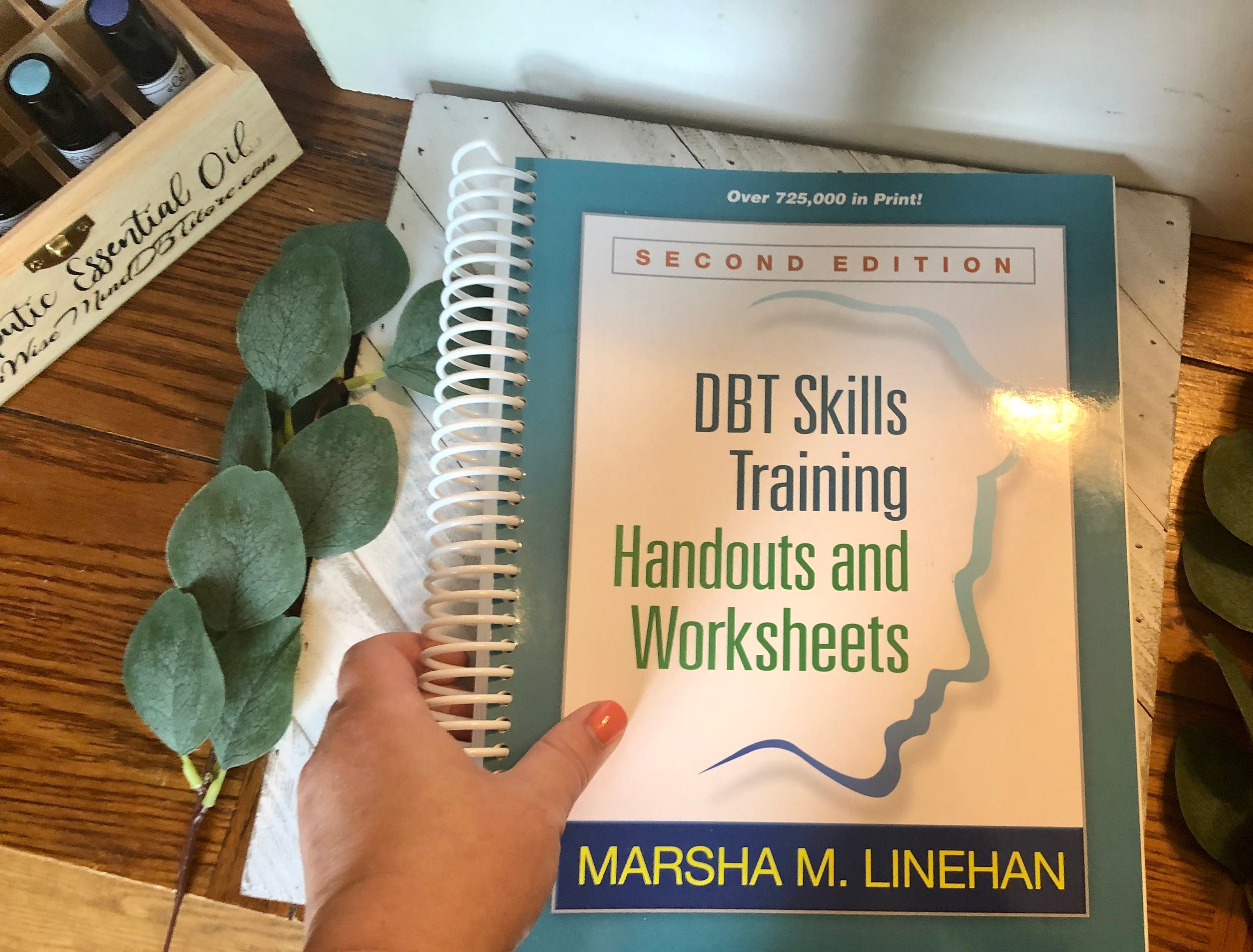Official DBT second Ed. brand new Marsha Linehan Ph.D DBT Skills Training Manual and Handouts, REAL DBT! And five DBT Essential Oil blends. Blends were hand crafted by a DBT Therapist and Essential Oil Skilled Blender with organic, best oils in the market, very high caliber products. Then the carrier oil in the 5 large size rollerballs is hypoallergenic cold pressed grapeseed oil. Potent blends include “WISE MIND,” “ONE MINDFUL,” “STOP SKILL SUPPORT,” “ACCEPTANCE,” and “WILLINGNESS,” designed to compliment your study and practice of Dialectical Behavior Therapy and book and oils designed to work together to significantly enhance mental health wellbeing. Not a substitute for engaging in any medically necessary psychotherapy or health care. Consult a health care provider if needed on if DBT is a path you’d like to use in mental health recovery and wellness. *Wise Mind Oil Sorting box pictured not included *