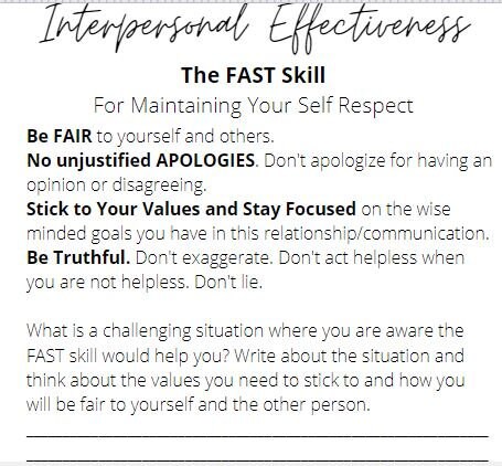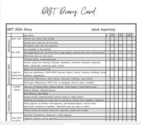 An area for journal free-writing is included. An excellent tool to use while attending DBT psychotherapy.