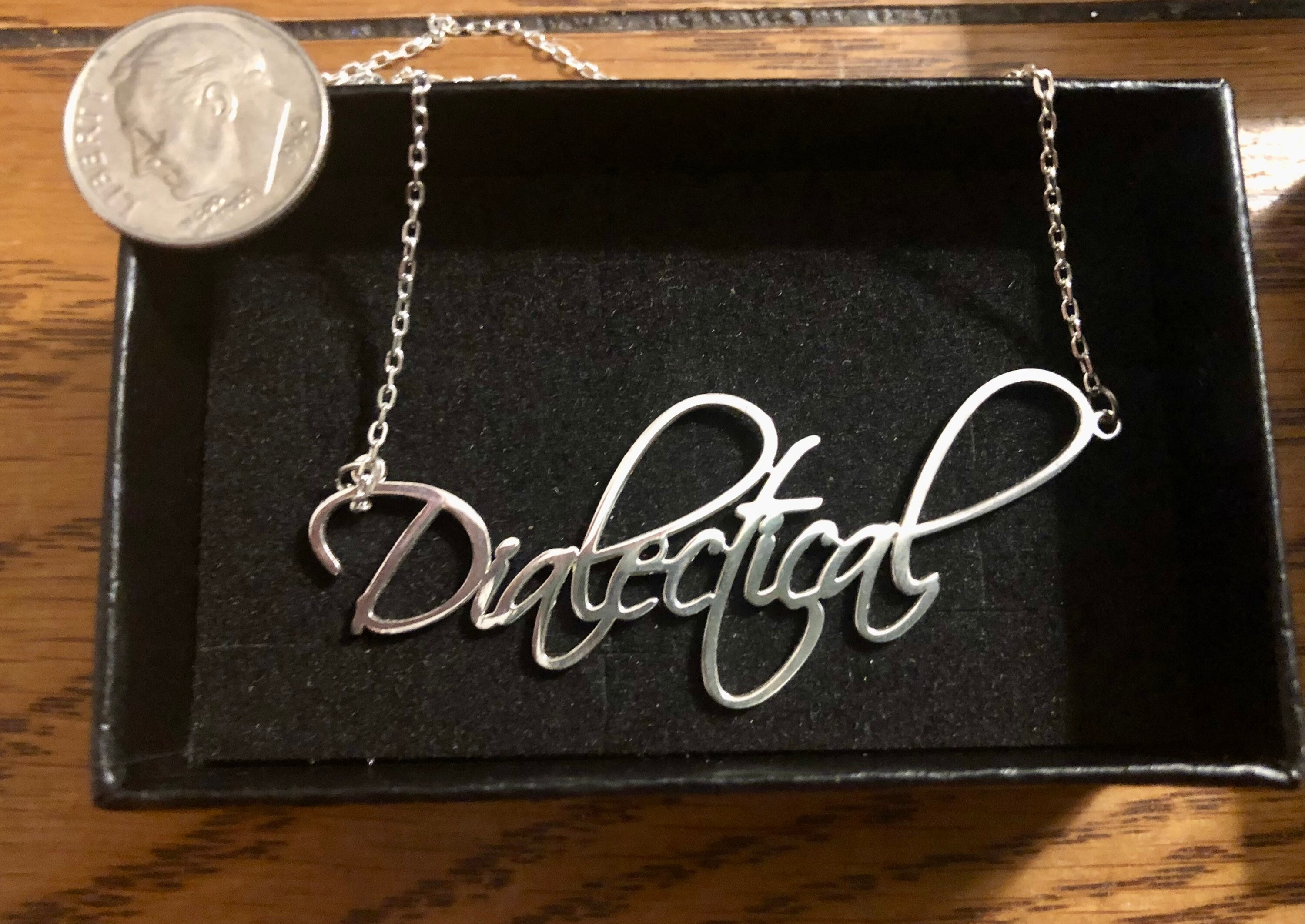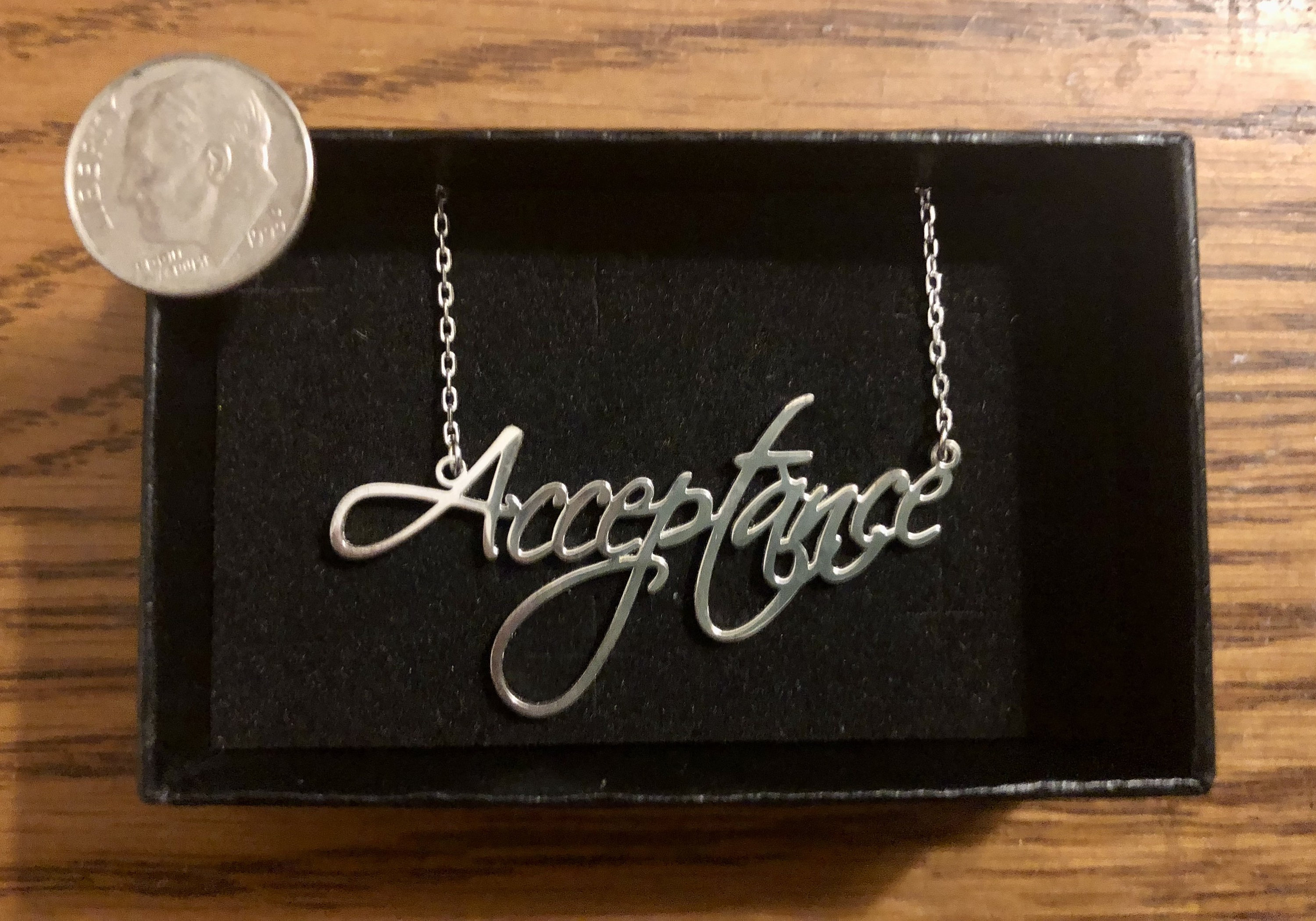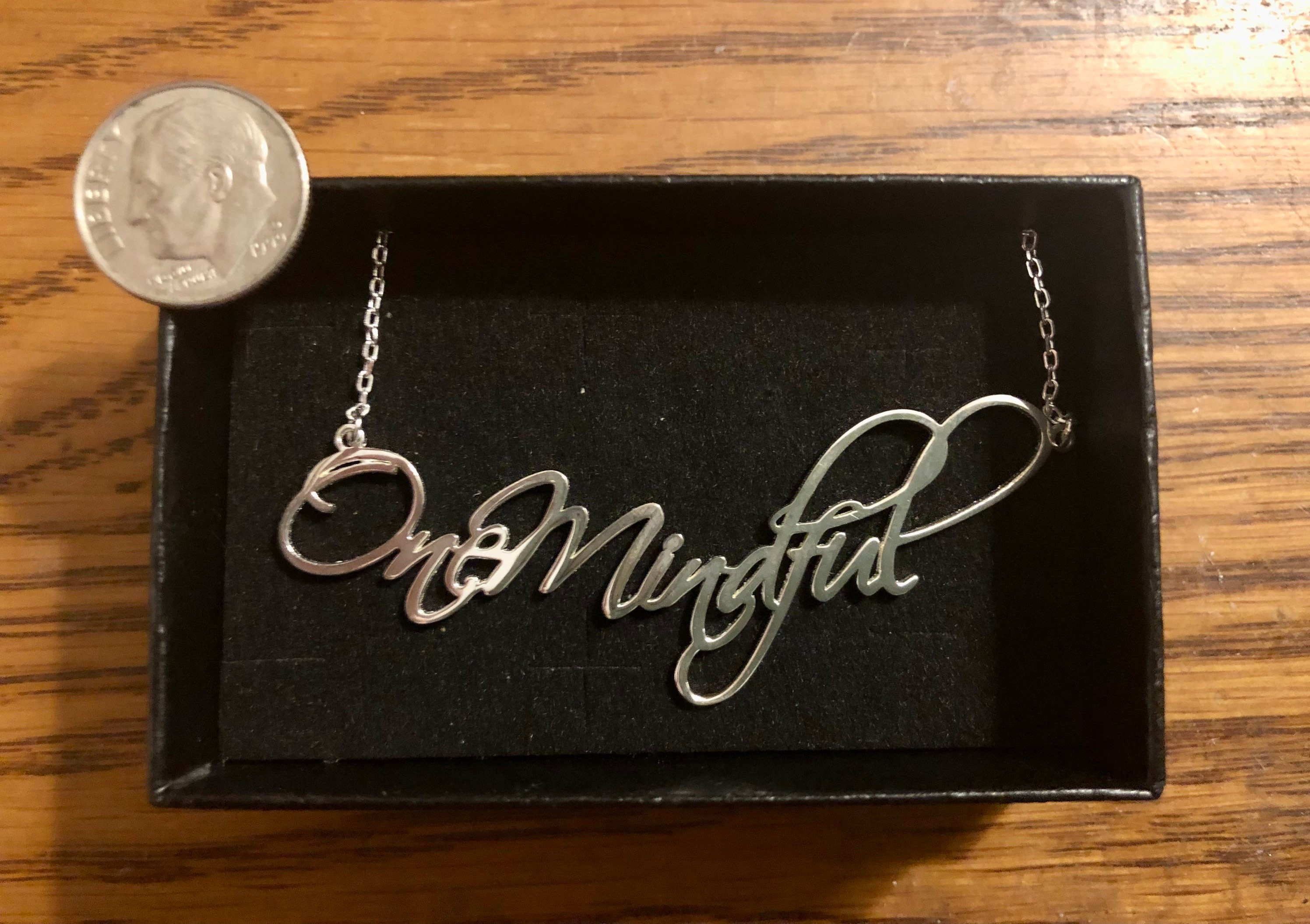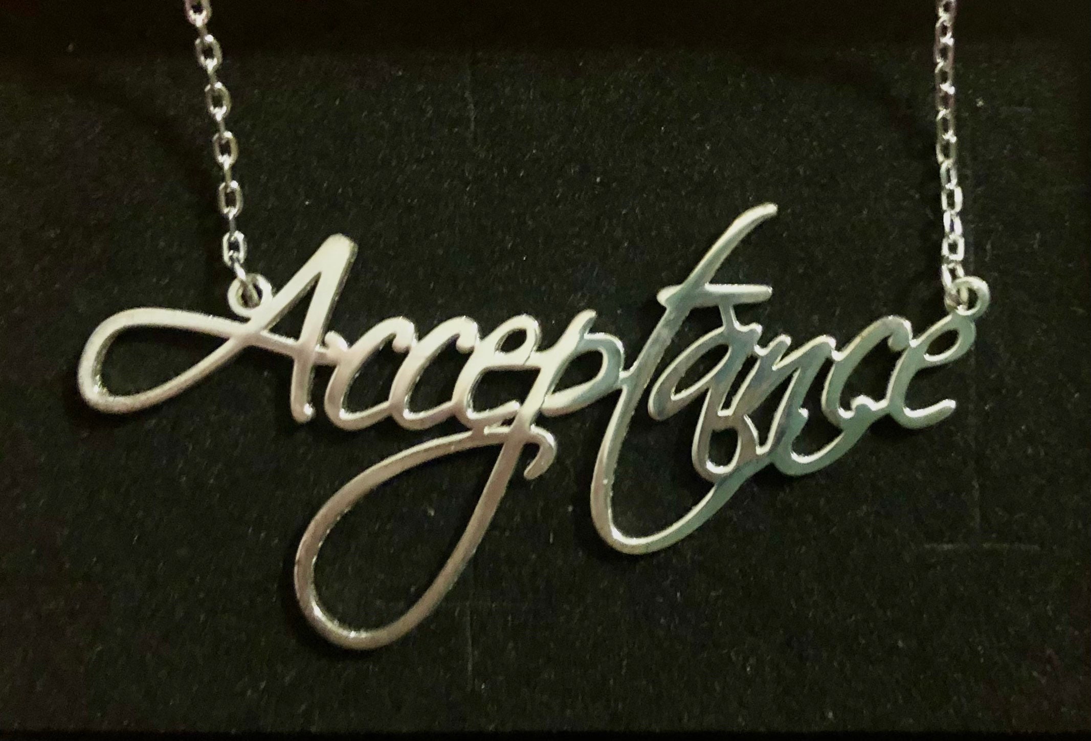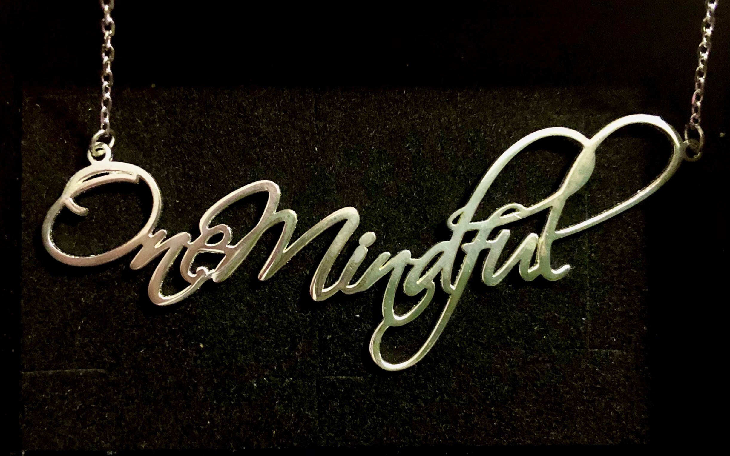 DBT theme beautiful silver necklace; choice of key DBT skills, concepts in design script. Dialectical behavior therapy close to you in style!